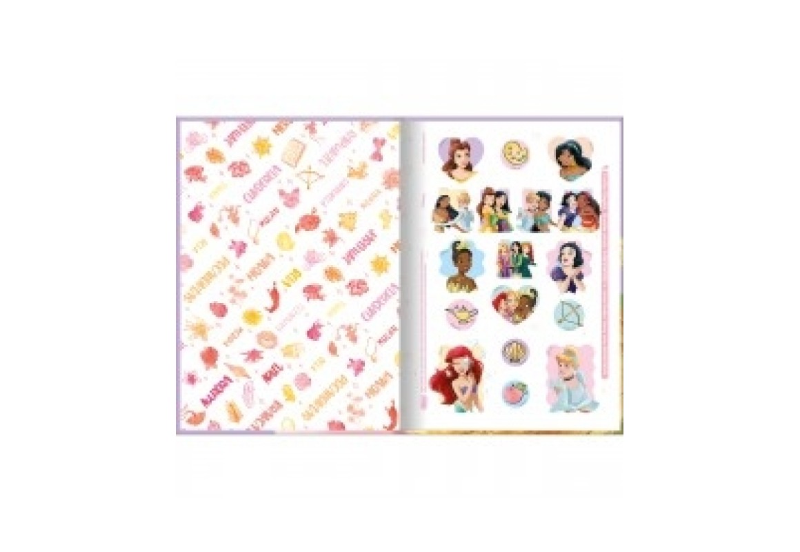 O Caderno Brochura Capa Dura 1/4 Princesas 80 Folhas possui capa dura com a parte interna decorada, folha dupla de adesivos e folhas pautadas. Ideal para o dia a dia na escola.