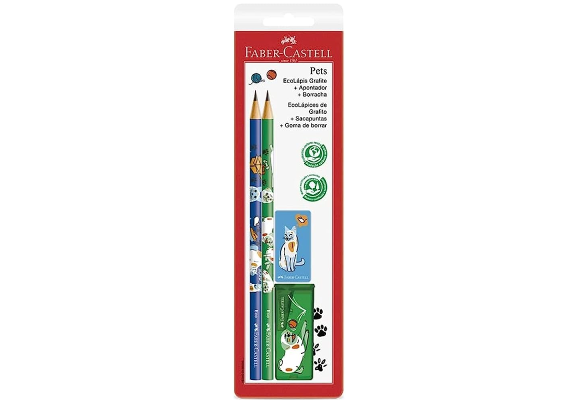 KIT ECOLAPIS PETS+BORRACHA+APOTADOR FABER CASTELL